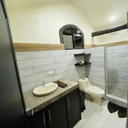 Cet établissement Villa The Wellness Park Costa Rica comprend une salle de bains avec une toilette séparée et une douche. Un sèche-cheveux, des articles de toilette gratuits et des serviettes sont également fournis.